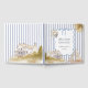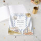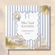 Introducing our Beach House Blue Coastal Chic Guest Information Guest Book. Featuring watercolor illustration coastal cottage with navy blue strips as background. Suitable for Rental vacation beach house or coastal cottage.