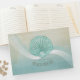 This guest book design in the soft colours of sea and sand allows you to easily add your own name and text using the provided template. The simple clam shell image on a distressed, watercolor background is highlighted by a wave accent in aqua and white. Search ID623 to see coordinating seaside elements and additional products with this design.