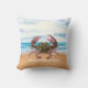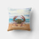 This Beach House Crab Pillow is the perfect thing to make you feel like you're on the beach, without the sand and salty air. The pillow features a crab design, with a picture of a beach, a watercolor blue sky, and the sun in the background. The pillow is available in other styles.