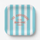 Beach House Custom Name Blue Cabana Stripe Paper Plate