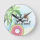 This clock features a beach scene with a refreshing drink in hand and toes in the warm sand. It's the perfect addition to your beach house, coastal-themed room, or as a unique gift for beach lovers.