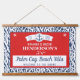 Welcome guests to your beach house with this eye-catching, custom hanging tapestry in shades of navy blue, red, and white. This personalised design has a gorgeous nautical coral pattern, plus an anchor, coral, and starfish. The personalised text templates have room for your established date, beach house name, and a welcome message. Customise further to change fonts / sizes & rearrange elements.