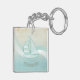 This acrylic keychain in the soft colours of sea and sand allows you to easily add your own name and text using the provided template. The simple sailboat image on a distressed, watercolor background is highlighted by a wave accent in aqua and white. Search ID623 to see coordinating seaside elements and additional products with this design.