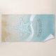 This beach towel design in the soft colours of sea and sand allows you to easily add your own name and text using the provided template. The simple starfish image on a distressed, watercolor background is highlighted by a wave accent in aqua and white. If you aren't fortunate enough to have a beach house or cottage, just change the text on this fun design to whatever suits your needs. Search ID623 to see coordinating seaside elements and additional products with this design.