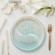 This paper plate in the soft colors of sea and sand allows you to easily add your own name and text using the provided template. A supplied white frame is optional. The simple palm trees image on a distressed, watercolor background is highlighted by a wave accent in aqua and white. Search ID623 to see coordinating seaside elements and additional products with this design.