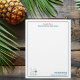 This cute tropical real estate company letterhead features a modern blue beach house with a cool coastal palm tree and island sun. Customise this marketing paper with your agent and realty business name for a realtor who works along the coast.