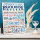 Decorate your coastal cottage with this personalised "family beach house rules" 8x10 display plaque. Full of funny sayings in shades of blue, aqua green, coral, red and sandy brown, this whimsical artwork will make your family and your guests laugh. The background has a light faux (printed) wooden texture.
