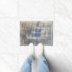 Beach House Rustic Wood Effect White Name Blue Doormat