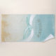 This beach towel design in the soft colours of sea and sand allows you to easily add your own name and text using the provided template. The simple seagull image on a distressed, watercolor background is highlighted by a wave accent in aqua and white. If you aren't fortunate enough to have a beach house or cottage, just change the text on this fun design to whatever suits your needs. Search ID623 to see coordinating seaside elements and additional products with this design.