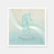 This paper napkin in the soft colours of sea and sand allows you to easily add your own name and text using the provided template. The simple seahorse image on a distressed, watercolor background is highlighted by a wave accent in aqua and white. Search ID623 to see coordinating seaside elements and additional products with this design.