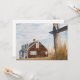 In this painting of a quintessential a New England cottage, a weathered beach house sits peacefully in the morning sun, its white windows brilliant against dark shingles. Stark gold and white sunlight emphasise the late-season shadows in the dry autumn grass and old wooden fence in the foreground. A roiling skyscape shows ocean mist burning off to reveal pale blue skies.