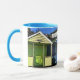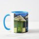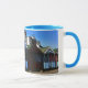 This bright and colourful photo was taken by my husband on a sunny, but chilly day at Southwold in the South East of England. I like this photograph because its a summer scene from typical English seaside coastal town. These unique and brightly painted beach huts look amazing against the vibrant blue of the summer sky. Beach huts are a much sought after and prized coastal hideaway to many British seaside visitors. The owners of these huts usually paint them in seaside colours such as "sea blue," and "sand yellow" so that they stand proudly along the promenade. The title of this photo is-: "A Very English Seaside View" and I think it looks bright and cheery on this quality mug. It'll make an original gift for someone who loves the seaside and the tranquillity of summer, or maybe it's a special treat for yourself This paticular photo has been digitally enhanced to give it a cartooned effect.