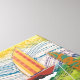 Attractive beach huts of mixed media artwork along with colourful sailboats sailing under deco patterned sails, making this a most colourful exhibit to be admired.