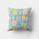 Beach Huts and Seagulls Pattern on Teal Blue Cushion