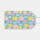 Cute pastel coloured gift tags featuring a pattern of candy striped beach huts.