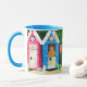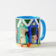 A good quality white 'ringer' mug with a blue rim and handle. The 'beach huts' design is made from a handpainted paper collage and is dishwasher and microwave safe. See other matching products, gifts and greeting cards.