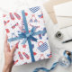Beach Items in Red Blue White Wrapping Paper