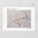 Wedding Announcement postard. "Just Married" is written in the sand - great for those who had destination weddings, elopements, beach ceremonies or honeymooned on the beach! Add your own wedding photo and customise with your own wedding details for a cute, easy to personalise, custom card for family and friends!