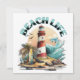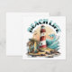 Beach House 'Blank Art Card. Frame it or send it! Illustration of a beachy scene with lighthouse, surfboards, palm trees and dolphin.