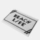 If you're living your best beach life then this is the doormat for you! This black and white doormat reads "beach life" in a fun faux hex tile design.Surf's up!