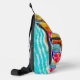 Your first name on the side of this custom sling bag along with a fun pattern of colourful beach umbrellas, waves on a sandy beach, sunbathers, and