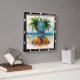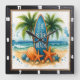 This square wall clock features a vibrant beach scene with towering palm trees, gentle ocean waves, and scattered seashells. A prominent surfboard declares "LIFE IS BETTER AT THE BEACH," making this colourful and serene timepiece a perfect decorative accent for anyone who loves the sand, sun, and sea.