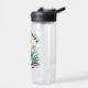 Beach Life Water Bottle. Illustration of a beachy scene with lighthouse, surfboards, palm trees and dolphin.