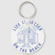 Beach living Coxy cabin Palms line drawing design Key Ring