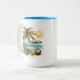 Dive into relaxation with our stunning Large Two-Tone Ceramic Beach Mug, featuring a serene tropical beach scene that transports you straight to paradise.