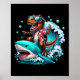 Beach Lover T-rex Dinosaur Riding Shark Surfing Oc Poster