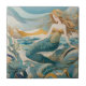Beach Mermaid by the Sea Turquoise Gold Left side Tile