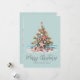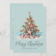 Celebrate the holidays with a bit of surf and sand with this shell and starfish Christmas Tree holiday card. Wish your loved ones a happy holiday season in beachy style. Whether you live in a beach or tropical location like Florida, California, Bahamas, or just love the beach look, this print is for you! This Christmas Tree has a starfish star up top and is covered in a mix of seashells and starfish. At the base is sand and some teal blue ocean waves. This print has a rustic or distressed watercolor look. A mix of simple fonts and script typography gives it a casual but elegant style, with all text in gray on a teal blue background.
