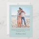 On the back, the teal blue background continues with gray fonts. There’s space for a photo at the top, with a holiday note and your name displayed at the bottom. Available as a printed card or as a downloadable digital file that you can send via email or print locally.