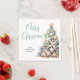 Celebrate the season with this festive and beachy party napkin, perfect for a coastal holiday gathering. The design features a whimsical Christmas tree made of beach shells, starfish, and coral on the right side, adding a fun tropical touch to your table setup. The overall colour palette includes shades of teal blue and tan, creating a relaxed, sunny vibe.