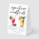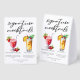 This chic beach signature mocktails menu table tent sign features simple black typography above 2 cute drinks and their ingredients for your summer wedding bar. A virgin Strawberry Daiquiri drink and non-alcoholic Piña Colada add a cool flair to your bar menu. Complete with the couple's names and date for their reception.