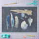 "Beach Ocean Shells Feathers Navy Blue Decoupage, Heavy Weight Tissue Paper for Decoupage or Gift Wrap." Hand painted in watercolor in a lovely blue and white over a deep indigo navy blue watercolor background for a fresh and trending home decor. All art by internationally licensed artist and designer, Audrey Jeanne Roberts. Copyright.