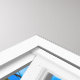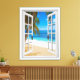 Blue seas Trompe L'oeil Picture with fake window beach view. Photo optical illusion special effect, with open window and beautiful tropical sea view.