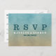 RSVP postcard in beige and turquoise, like ocean waves meeting sand.