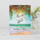 Beach with palms, sun, string lights, and script. Beautifully save the date that can be customised with your name.Select the "customise" button to change the font style,colour and size.