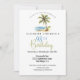 Celebrate a remarkable milestone with a beautiful tropical beach themed 98th birthday invitation that captures the relaxing spirit of the ocean. This elegant coastal design features a serene seaside scene with a graceful palm tree overlooking gentle waves, creating the perfect atmosphere for a warm and memorable birthday gathering by the shore. Soft beach inspired colors and timeless typography give this invitation a sophisticated yet relaxed island feel that is ideal for honoring a loved one’s extraordinary 98th birthday.