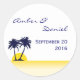 Modern sticker perfect for a beach wedding. Features two palm trees in navy blue with a yellow sunset in the background and yellow stripes on the bottom. Great for an event with an ocean, sea or beach theme. Clean and elegant design with a contemporary look. Use it to seal envelopes or for party favours. CONTACT MARLENEDESIGNER IF YOU REQUIRE A COLOR OR WORDING CHANGE