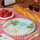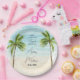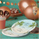 Matching palm tree paper plate tableware for your beach themed wedding or bridal shower.