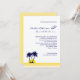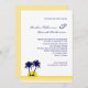 Modern invitation perfect for a beach wedding. Features two palm trees in navy blue with a yellow sunset in the background and yellow stripes on the bottom. Great for an event with an ocean, sea or beach theme. Clean and elegant design with a contemporary look. CONTACT MARLENEDESIGNER IF YOU REQUIRE A COLOR OR WORDING CHANGE.