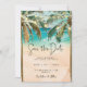 A beautiful beach and palm trees on a turquoise blue sea with string lights save the date card, with a co-ordinating reverse side. Easy to edit or delete the available text fields to personalise the information with your own details. Matching invitations and many other items in this tropical beach themed collection. Please visit my shop to see the full range or contact me if you need something with this design that is not currently listed.