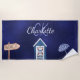 Beach party blue white monogram beach towel