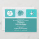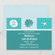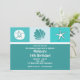 This fun beach party invitation features a sea shells and a starfish and customisable text on a teal and white background.
