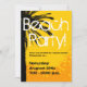 Beach party invitations with palm sunset. Custom invites for hot summer parties like birthdays, graduations, reunions, retirements, wedding, bachelorette, bachelor, marriage, celebrations etc. Personalizable announcement text and background colour. Tropical palm tree design with warm sunny colours. Yellow and orange.