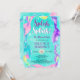 Splish, Splash! It's a mermaid bash! Join us for a fun pool or beach party celebrating any kids age birthday, featuring hand painted watercolor mermaids tails in pink, purple, holographic, rainbow, blue and green with faux shimmer glitter on a blue watercolor ocean background with watercolor bubbles and modern script typography.