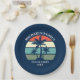 Beach Party Palm Tree Sunset Island Custom Blue Paper Plate