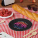 Beach Party Tropical Sunset Palm Trees Black Paper Plate